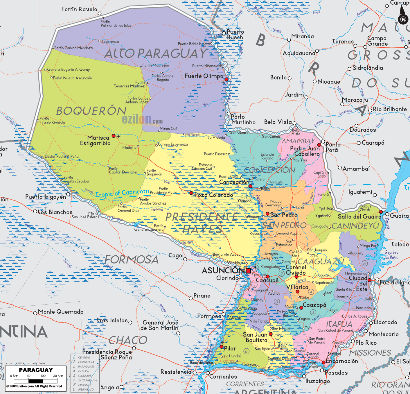 O Paraguai tem como capital a cidade de Assunção. O país não possui saída para o mar. A sua bandeira é a única no mundo que possui frente e verso. Como o país tem impostos bem mais baixos que o Brasil, acaba atraindo muitos turistas brasileiros em busca dos mais variados tipos de produtos.