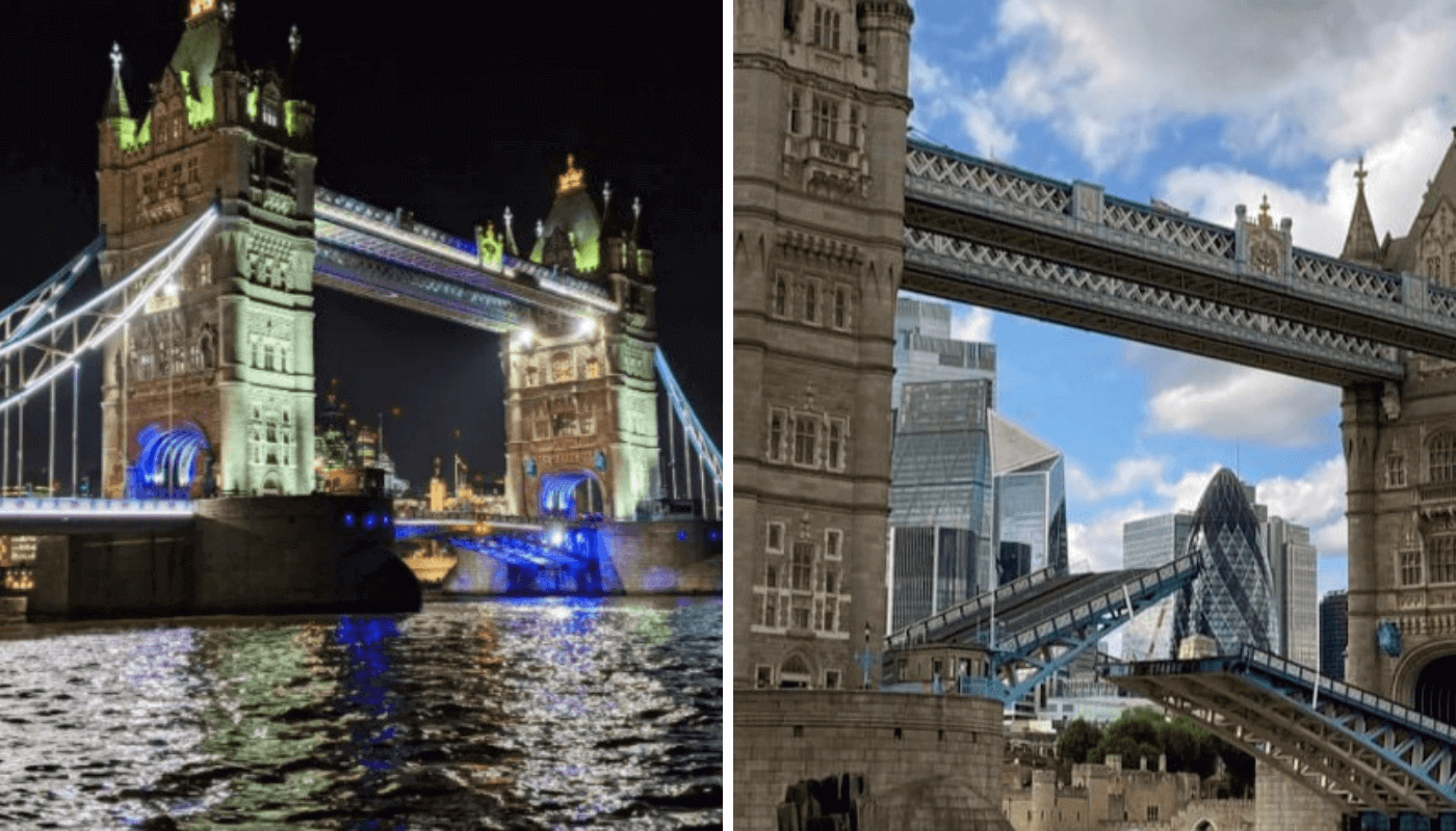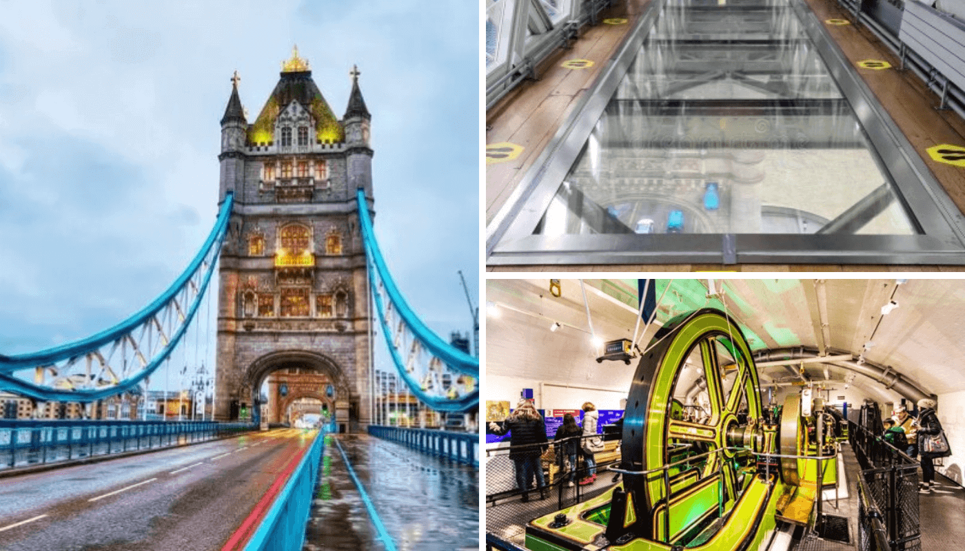 Um dos cartões postais mais icônicos da capital Inglesa, a Tower Bridge está localizada no rio Tâmisa. Foi inaugurada em 1894 e, atualmente recebe milhares de turistas, além de ser conhecida como uma das pontes mais famosas e bonitas do mundo. A Tower Bridge é uma ponte basculante e se abre para passagem de navios cerca de 4 vezes por dia. Para atravessar a ponte não se paga nada, porém é possível conhecer a história da ponte através do Tower Bridge Exhibition (ingressos a partir de 10 libras), onde o turista terá a oportunidade de subir na ponte, conhecer seu funcionamento e percorrer as 2 passarelas superiores de vidro, localizadas a 42 metros acima do Tâmisa, proporcionando uma vista incrível.